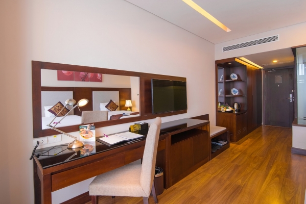 đặt phòng trực tuyếnPhòng rộng lớn với view nhìn ra thành phố, đi kèm sàn lát gỗ, két an toàn điện tử, tủ quần áo và truyền hình cáp màn hình phẳng. Ngoài ra, phòng còn có minibar và ấm đun nước điện. Phòng tắm riêng có tiện nghi vòi sen, bồn tắm, máy sấy tóc và áo choàng tắm.