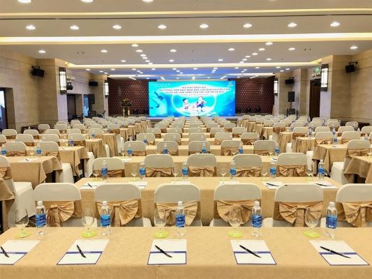 Với 5 Sảnh hội nghị với sức chứa từ 50 đến 1100 khách với trang thiết bị máy chiếu, âm thanh, ánh sáng hiện đại và hệ thống điều hòa trung tâm đáp ứng mọi yêu cầu khắt khe của các đơn vị tổ chức hội nghị, hội thảo cấp cao.